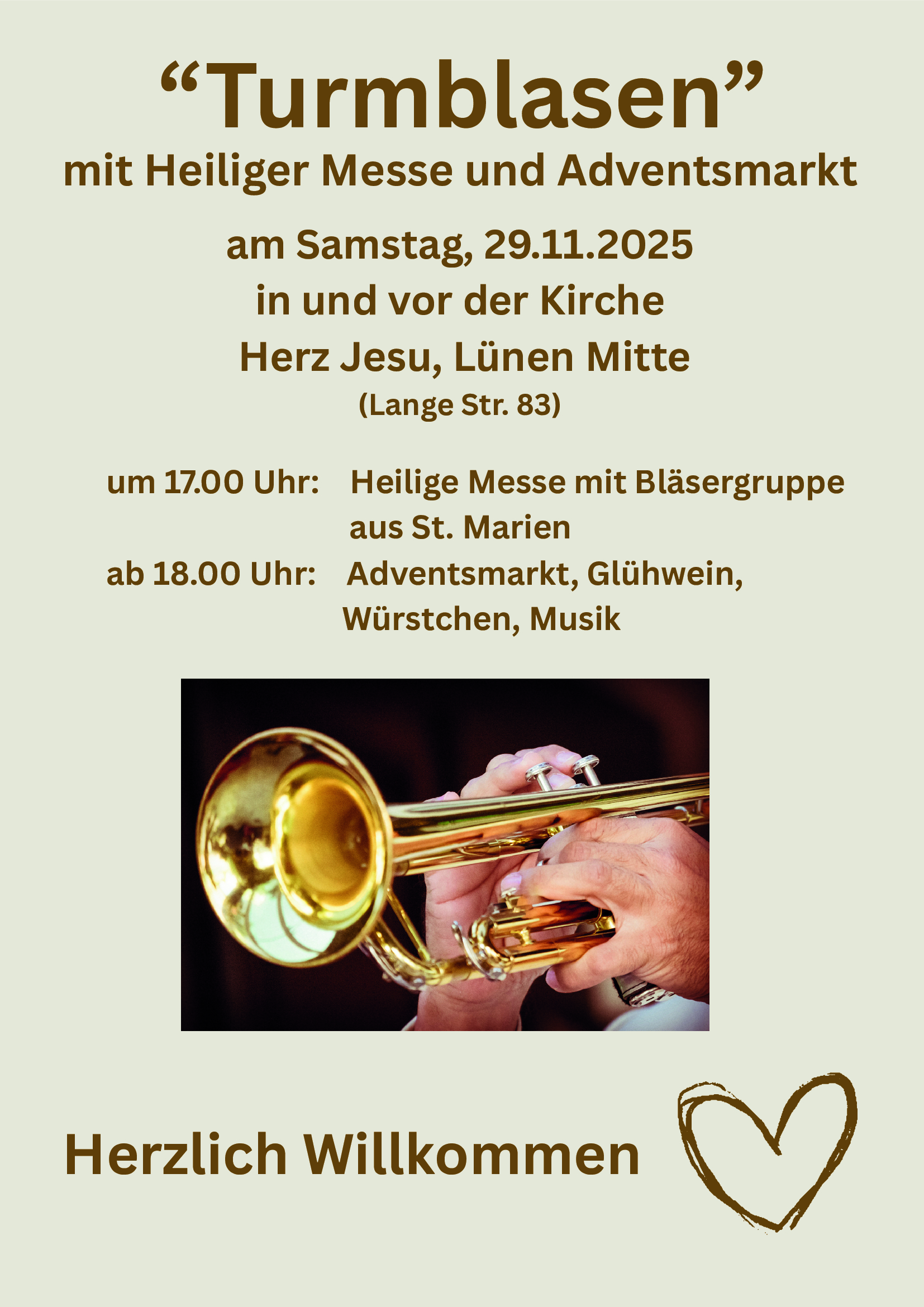 Am Samstag, , 29. November 2025, dem Vorabend des ersten Adventssonntags, findet in Herz Jesu, Lünen-Mitte wieder das beliebte „Turmblasen“ statt.